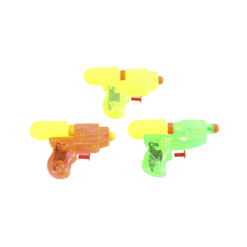 Este modelo es especialmente valorado por su tamaño funcional: mide 12 cm de largo, 8 cm de alto y 3 cm de ancho, lo que permite que entre fácilmente en la mano de un niño y también sea cómoda para un adulto. Es muy sencilla de usar: solo hay que sumergir la punta en agua, recargar y presionar el gatillo para comenzar a jugar. Por su formato seguro y su mecanismo suave, se adapta perfectamente a actividades recreativas, cumpleañitos, juegos en piletas o como parte de una bolsita sorpresa económica y útil.